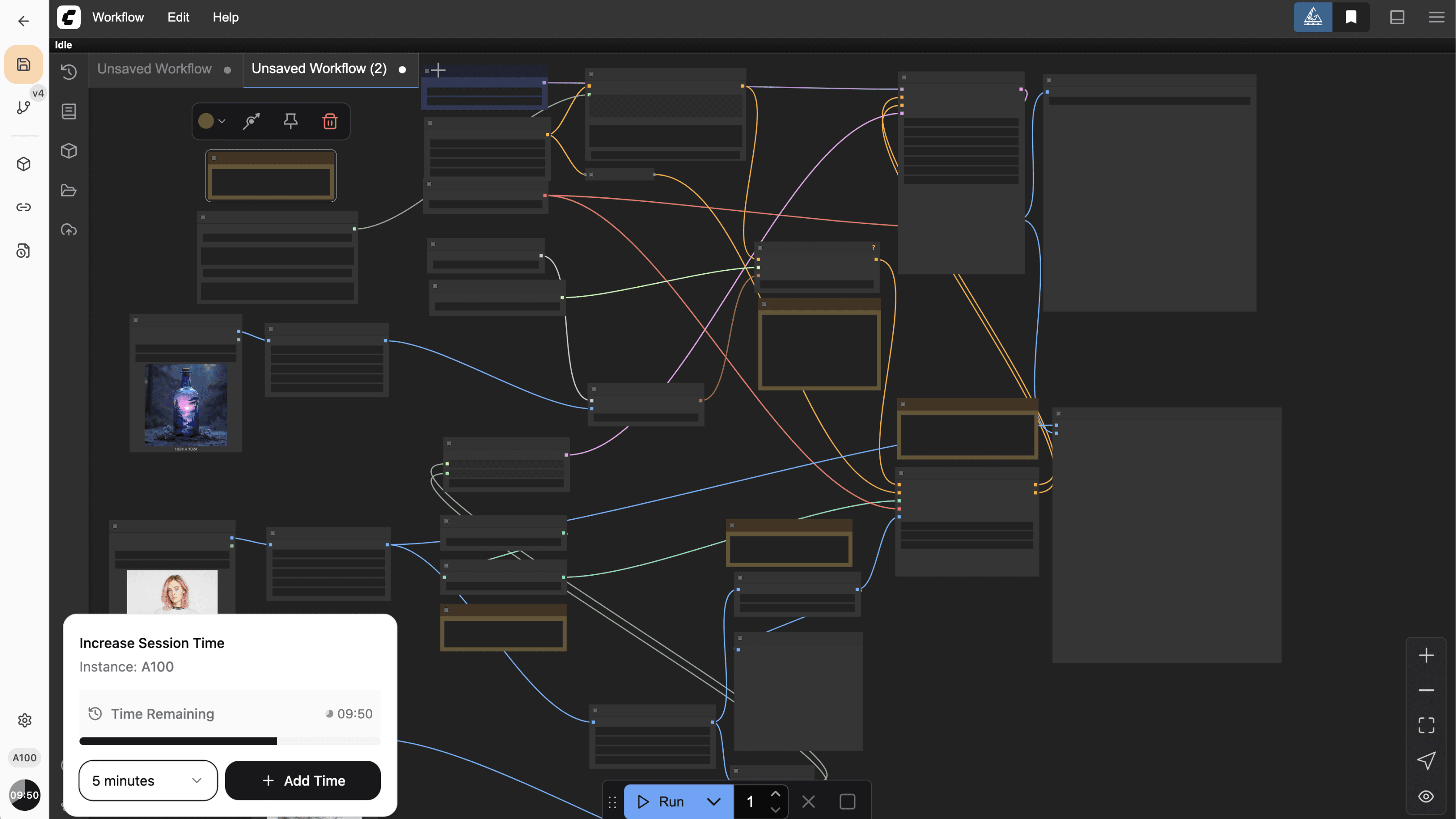 Opens the same ComfyUI environment on dedicated GPUs—models, nodes, and settings all set.