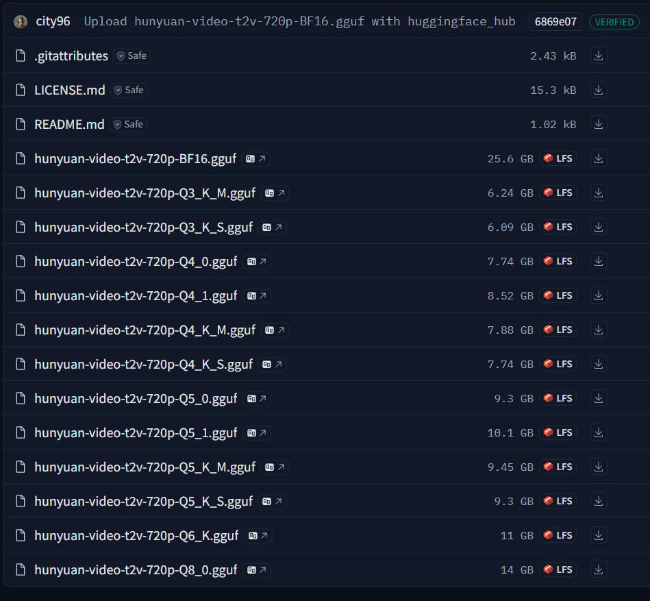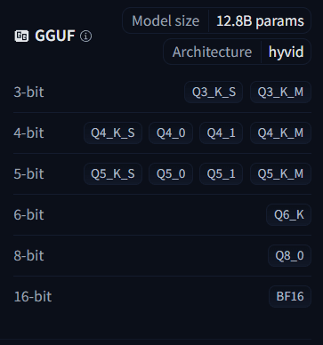 GGUF this format made by the creator of LlaMA Cpp (Gary Garganov Unified Format) and ported to comfy by City96 he has release some of the quants that should allow to run Hunyuan Video on smaller GPUs I won't cover all of them but you can get them here