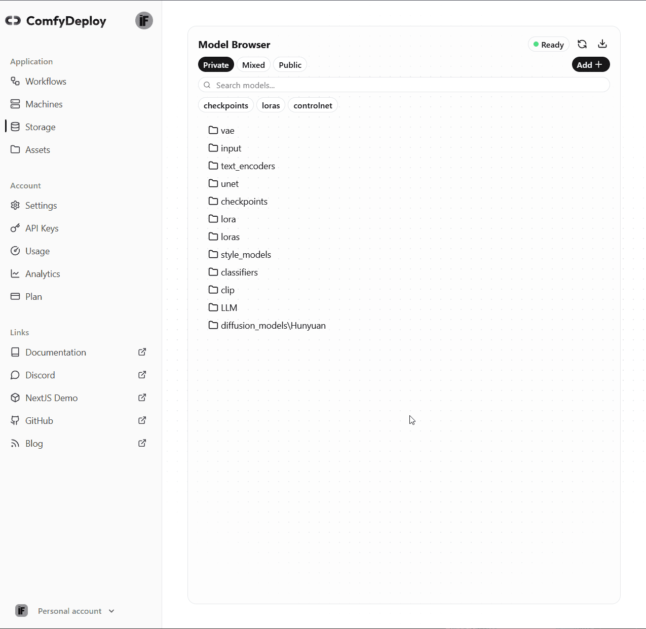 This is truly great. You can upload your models from any model provider as long as you have the URL CivitAI, HuggingFace, Github the upload is fast and is persistent between sessions MAMA mia! etc.. Best of all you can keep your secret sauce models private or get some from the public section Magnific!